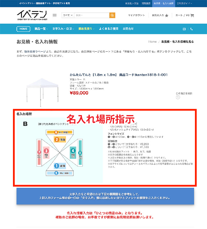 ※名入れ・お見積ページは複数の商品を登録できますが、名入れ入力は1つの商品のみにお願いします。