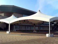 支柱は隅柱の4本(5.4m×10.8mは6本)のみでスペースも広く取れ、雨処理の心配もありません。間口も大きいので人・モノの導線確保も容易く、また横幕を使用することでクローズドスペースにもなります。