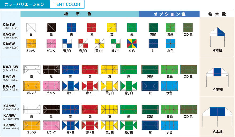 | 天幕 | ポリエステル100% 500D (防炎・防水・UVカット塗布処理済) | |