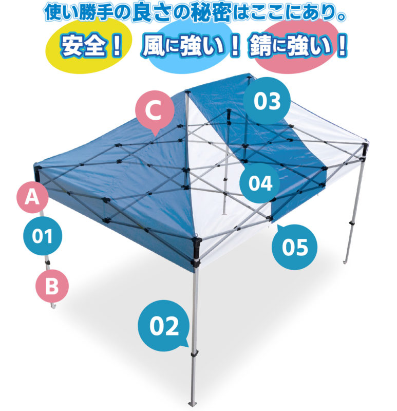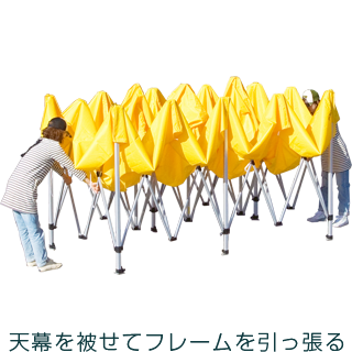 伸ばして広げるだけの簡単組立て 約60秒で設営・撤去が可能です