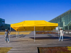かんたんてんと®は部品が全て一体化されており、「本体を広げるだけで設営」&「閉じるだけで収納」と、短時間の簡単操作でご使用が可能で、部品紛失の心配もありません。