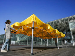 伸ばして広げるだけの簡単組立て 約60秒で設営・撤去が可能です